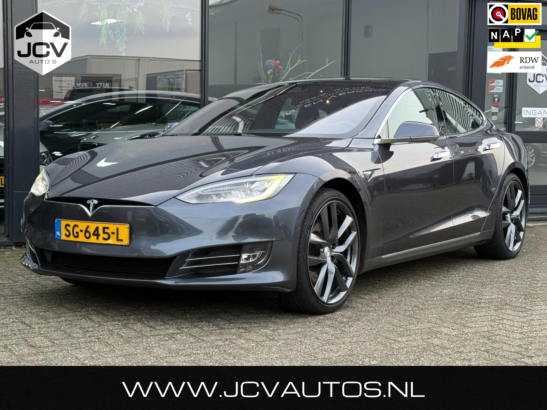 Hier staat een mooie en goed uitgevoerde Tesla Model S uit 2018 met een aantoonbaar originele kilometerstand.