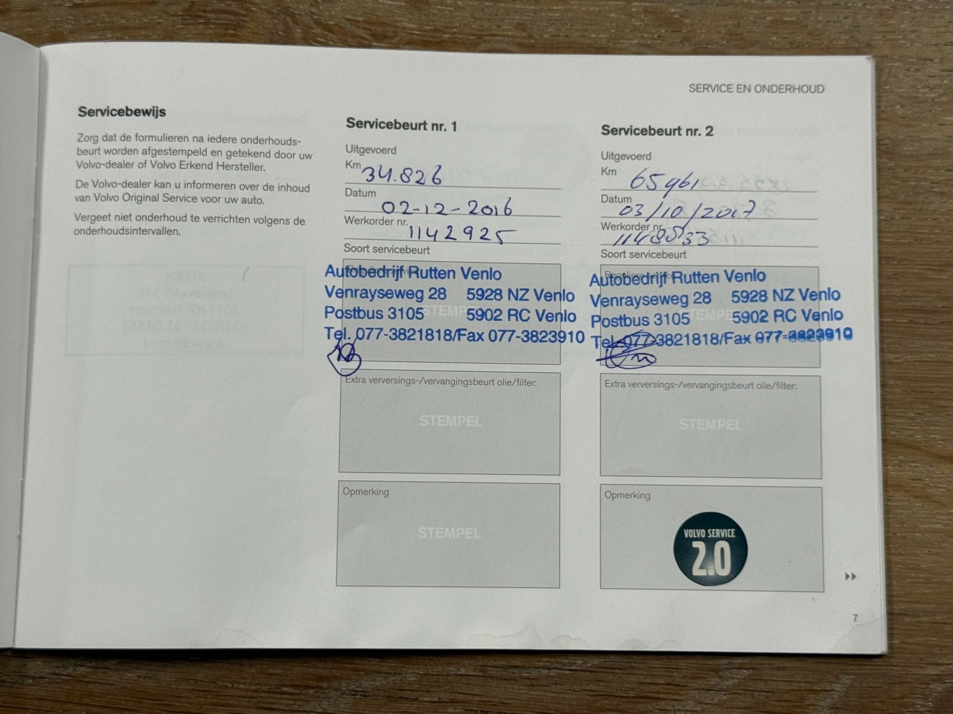 - Onderhoudsboekje aanwezig?
