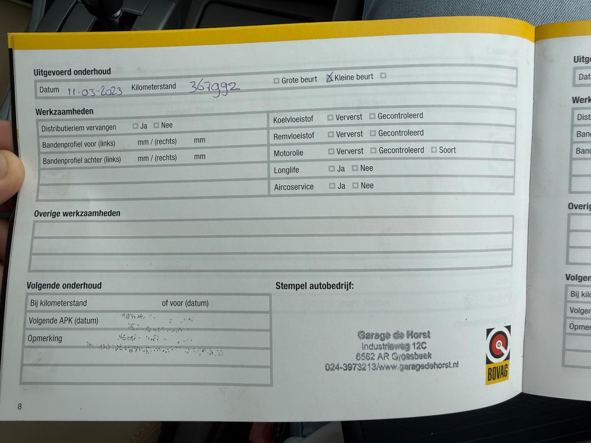 - Onderhoudsboekje aanwezig?